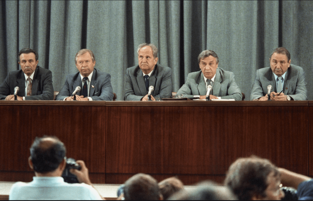 19 აგვისტოს გამთენიას კონსერვატორების ჯგუფმა, რომლებიც გორბაჩოვის რეფორმების პოლიტიკას არ იზიარებდნენ და ასევე არ ეთანხმებოდნენ ახალ სამოკავშირეო შეთანხმების პროექტს, შექმნეს სსრკ-ის საგანგებო ვითარების სახელმწიფო კომიტეტი, იგივე „გე-კა-ჩე-პე“ (ГКЧП). სახელმწიფო გადატრიალების შესახებ მოსახლეობამ ჯერ საკავშირო რადიოს ეთერიდან, შემდეგ კი საინფორმაციო პროგრამა „ვრემიადან“ დილის 6 საათზე შეიტყო. სახელმწიფო ტელევიზიის დირექტორმა მიიღო განკარგულება „ისე ემუშავა, როგორც კომპარტიისა და სახელმწიფოს გამოჩენილი მოღვაწეების დაკრძალვის დღეებში“.